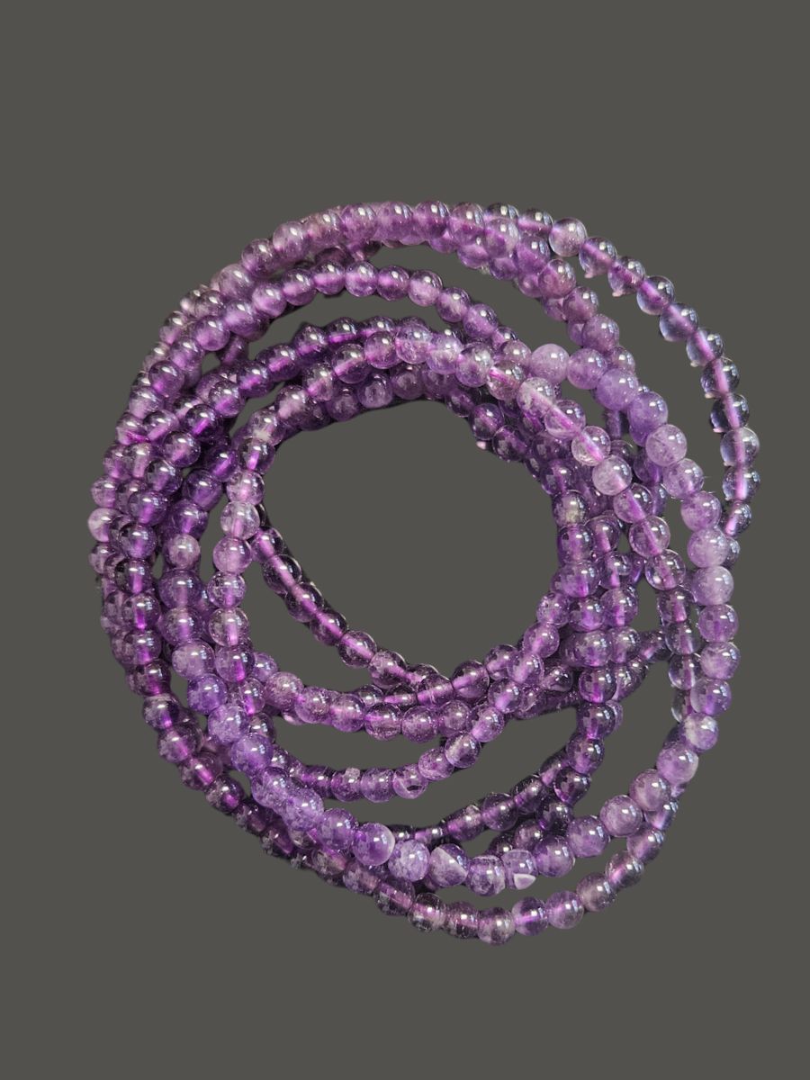 Tento jemný náramek z minerálu ametyst je tvořen drobnými broušenými kuličkami o průměru cca 4 mm. Působí decentně, elegantně a je vhodný pro každodenní nošení i kombinování s dalšími náramky. Barva kamene se pohybuje od světle fialové až po sytě purpurovou. Každý kus je přírodní originál a odstín či kresba se mohou mírně lišit od fotografie.