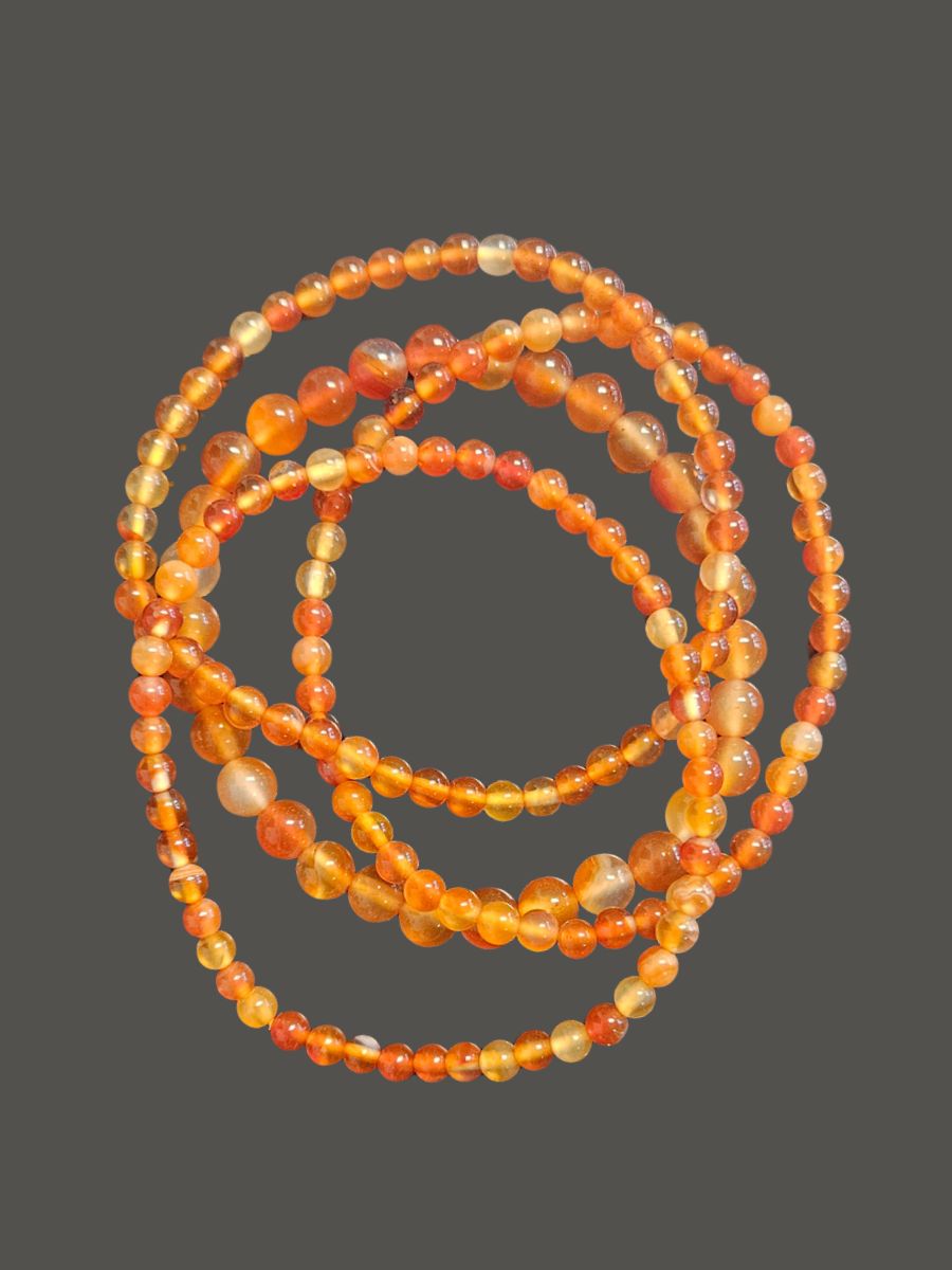 Tento náramek ze sekaného karneolu ve světlém odstínu zaujme svou teplou barvou v tónech od jemně oranžové přes broskvovou až po světle medovou. Karneol je odrůda chalcedonu s charakteristickým hedvábným leskem a jemnou průsvitností. Světlejší varianta působí decentně a elegantně, přitom si zachovává veškeré vlastnosti tohoto oblíbeného minerálu. Každý kus je přírodní originál a odstín se může lišit od fotografie.