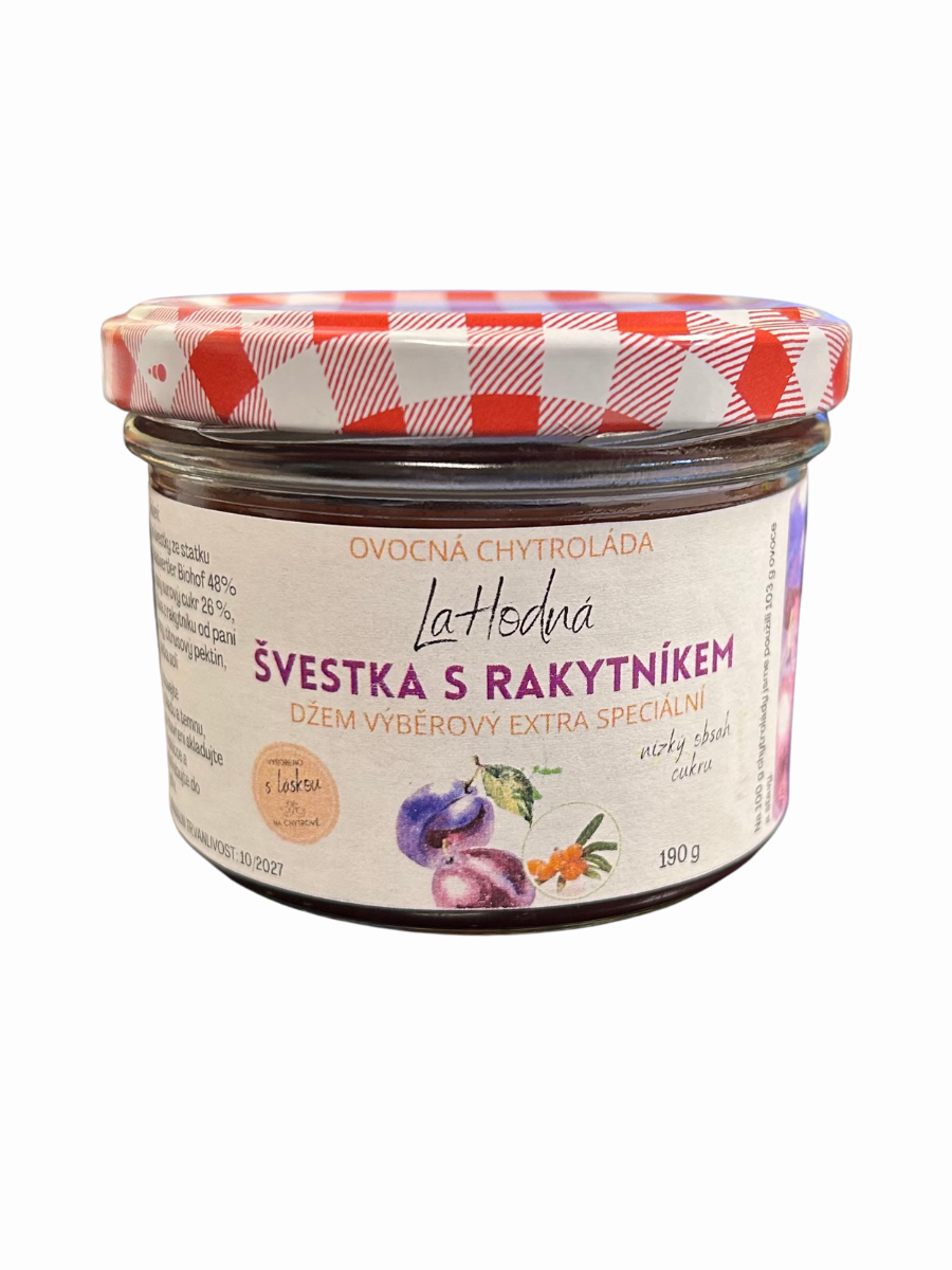 Čistá, ovocná chuť švestek a rakytníku v celé své kráse. Tato chytroláda je z 48 % tvořena poctivými biošvestkami ze statku Waldviertler Biohof, jemně doslazená surovým řepným cukrem a obohacená šťávou z rakytníku od paní Ireny. Žádná zbytečná chemie, jen přirozená sladkost a plná chuť, kterou si zamilujete po prvním soustu.